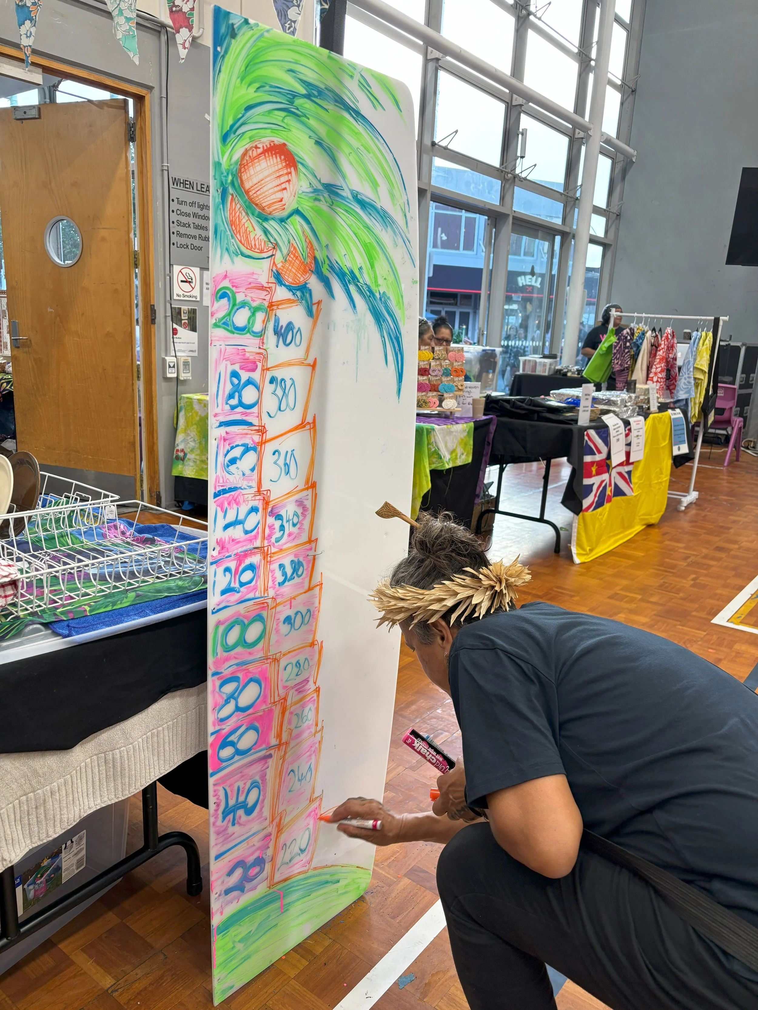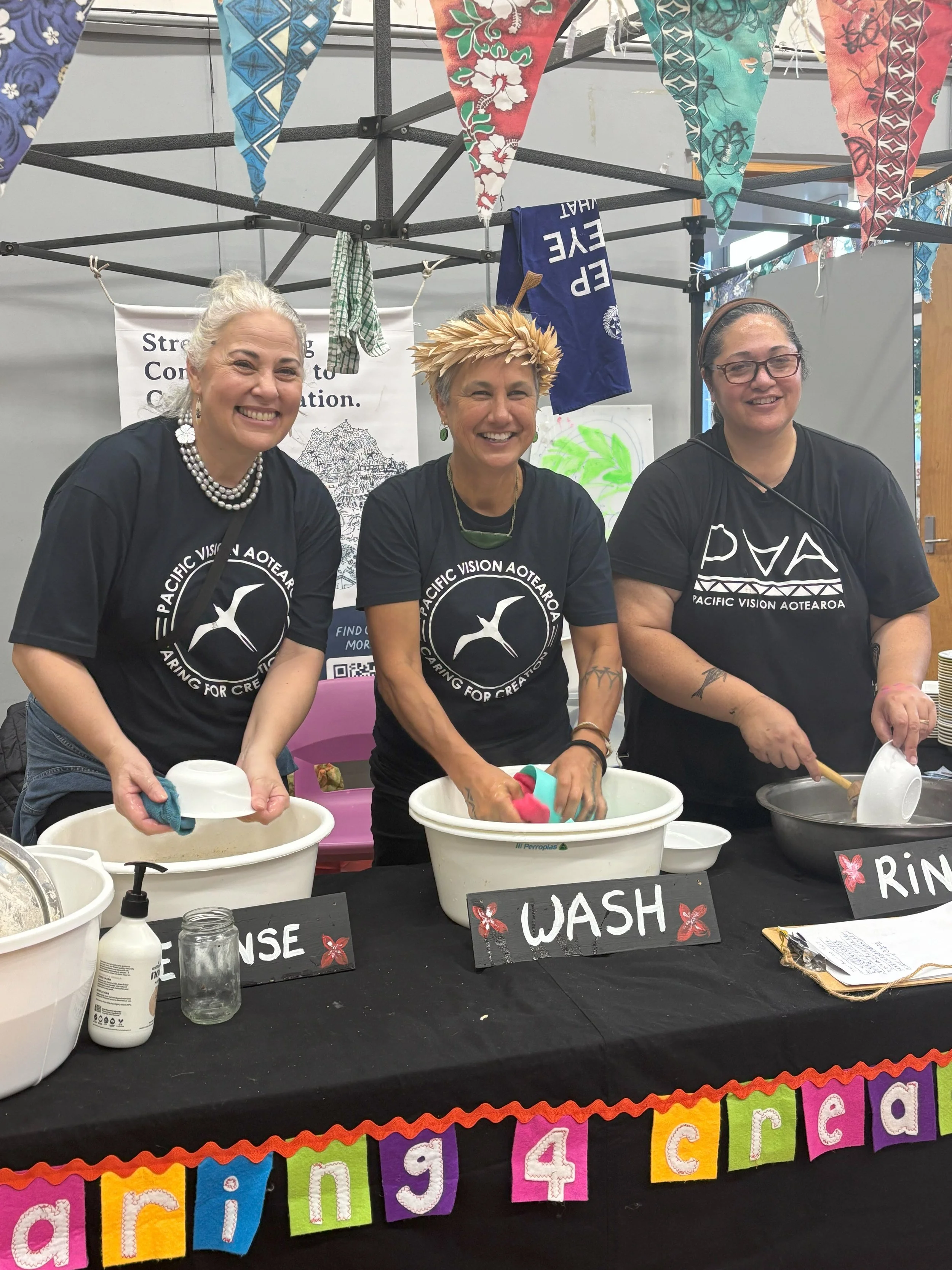 The Whau Pasifika Festival 2025 included an array of exciting events and workshops over 10 days that included art, craft and music workshops, film screenings, a Te Tiriti workshop, a high school debate and a fashion show. The last day of the festival was the Fiafia night and Caring for Creation Maketi at the New Lynn Community Centre which Pacific Vision Aotearoa helped facilitate. Markets are known for generating a significant amount of waste to landfill, especially with food packaging. PVA saw an opportunity to divert, educate and inspire through providing real dishes that could be washed and reused on site. The PVA team collected plates, bowls, side plates, cups, forks and spoons and made sure everything was in place for their ‘Wai Wash’ station leading up to the maketi. The kaupapa and logistics of serving on real plates and bowls was shared with all market vendors followed up by conversations in person on the day.