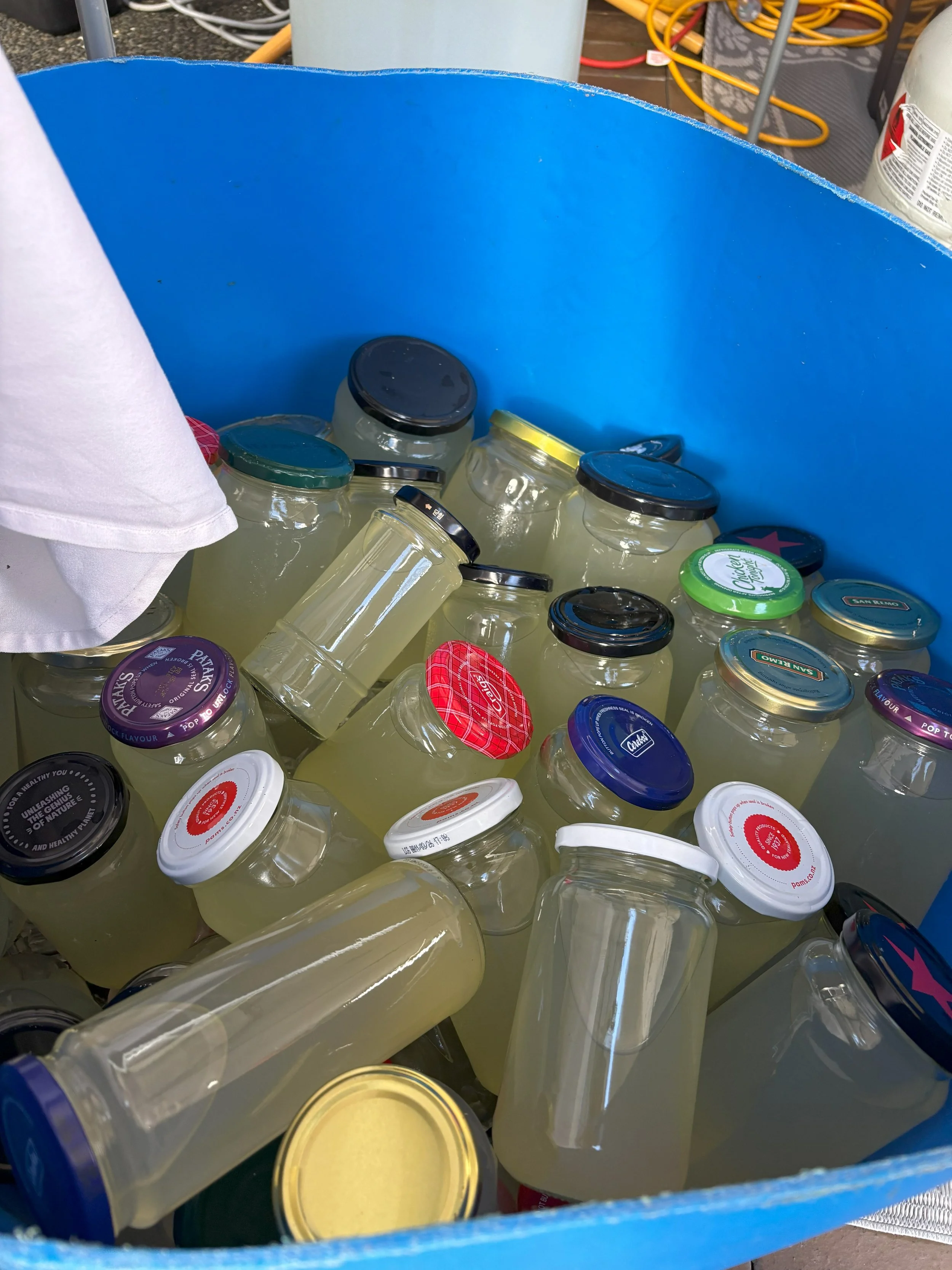 Homemade lemonade in jars at the Nana’s Donuts Stall
