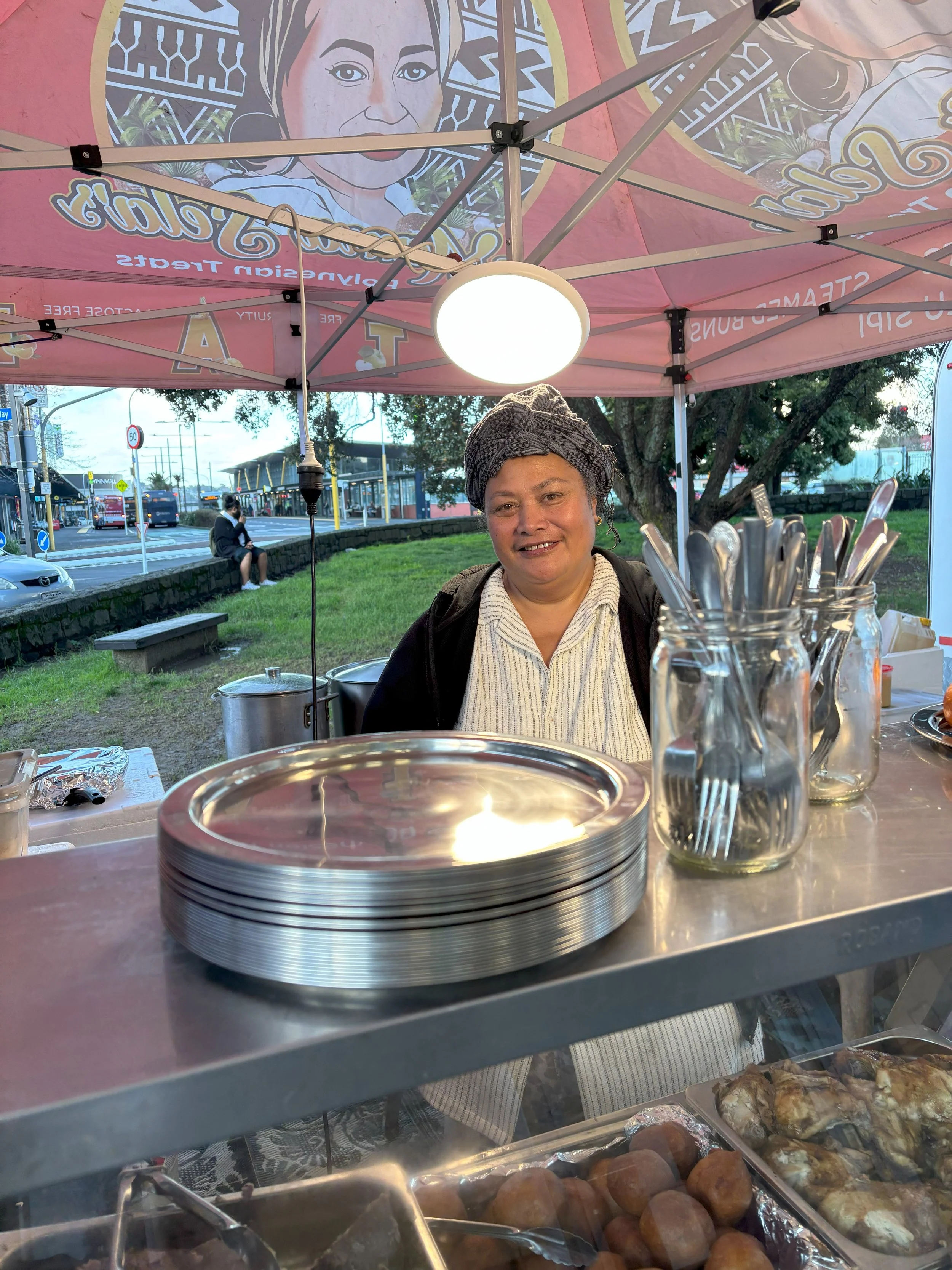 Food vendor Kevin from ‘Nana’s Donuts’ went above and beyond the caring for creation call and served their homemade lemonade in glass jars which were sourced from local op shops. These were popular drinks with diners and Kevin thinks it was because the jars were relatable but also a novel way to serve a drink. Their food stall tried something different for this maketi and made delectable slow cooked meats served in panini bread with mushroom sauce. The panini bread was sourced from PaknSave which Kevin made sure they came in cardboard boxes not plastic bags, a request that PaknSave were willing to do when Kevin explained the kaupapa. Koko Samoa was served in mugs which was perfect for a chilly night in the Whau. For all these efforts and dedication Kevin from Nana’s Donuts stall receives the PVA Caring for Creation Platinum stall award.