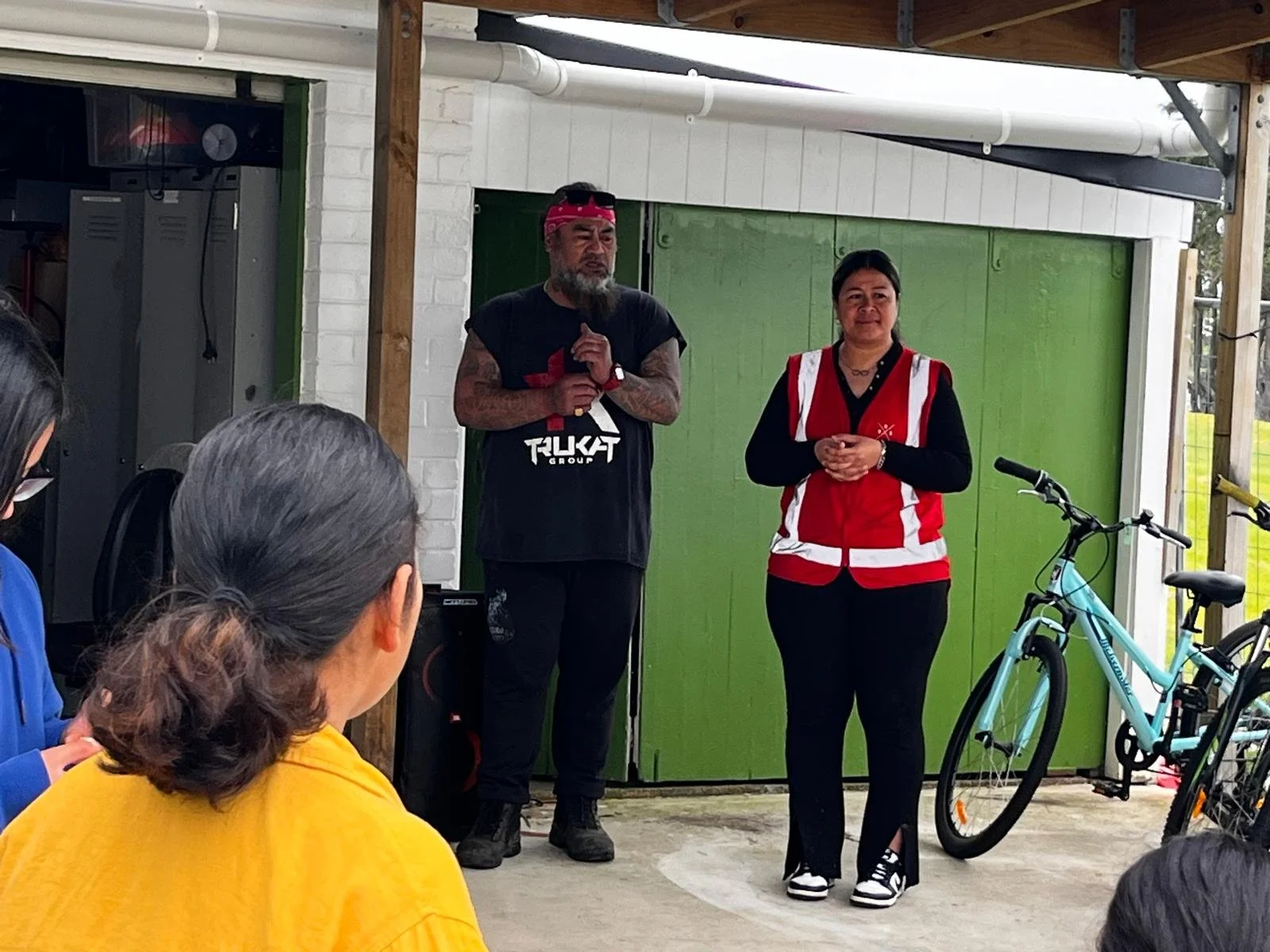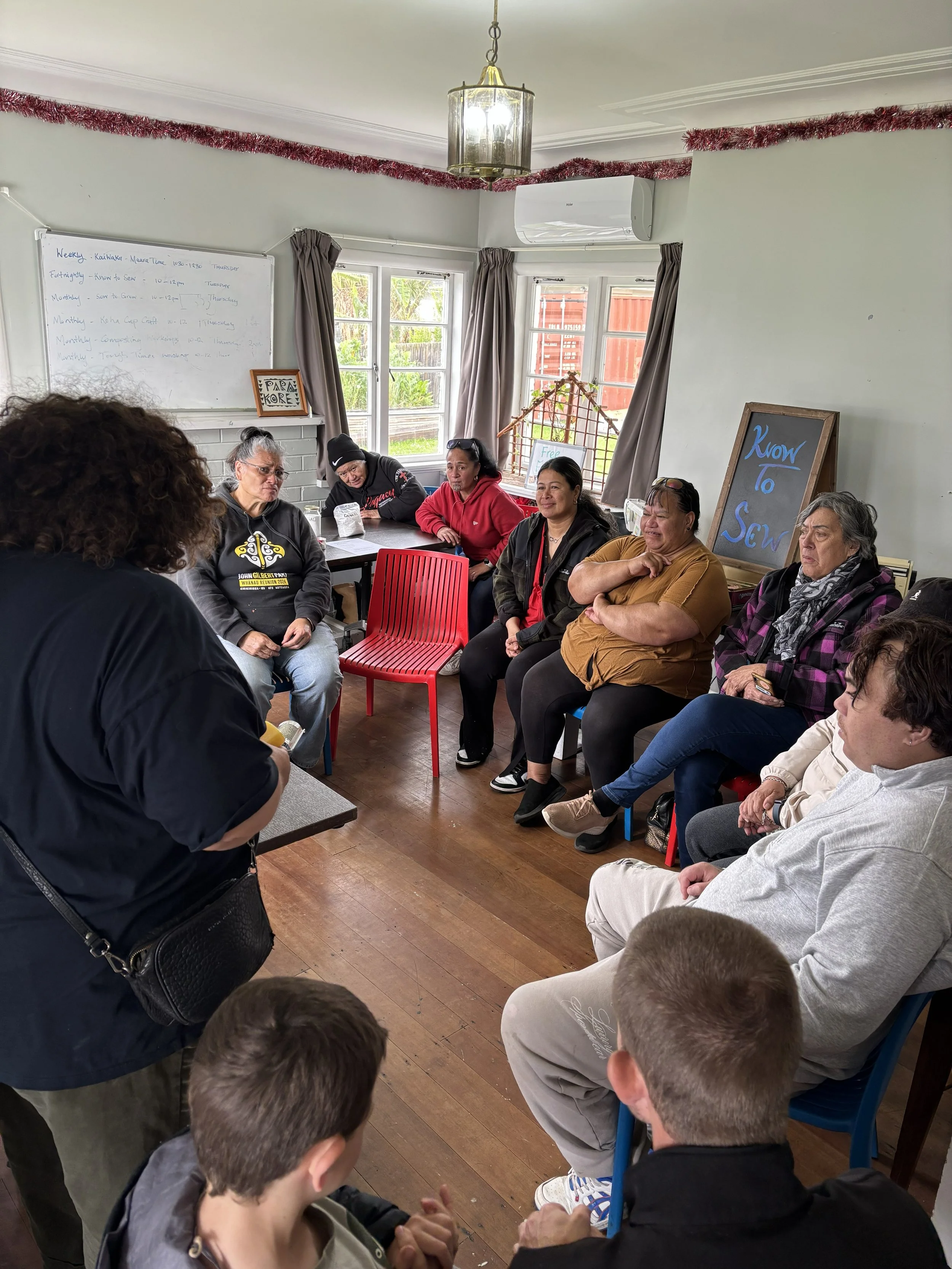 The final stop on the garden tour was a visit to The Roots Creative and S Double S Services Bike Hub, where visitors learned about the kaupapa and resources available from Waikare, Scott and Titi. Before long, tamariki were doing laps on bikes around the hub — a lovely sight to see!